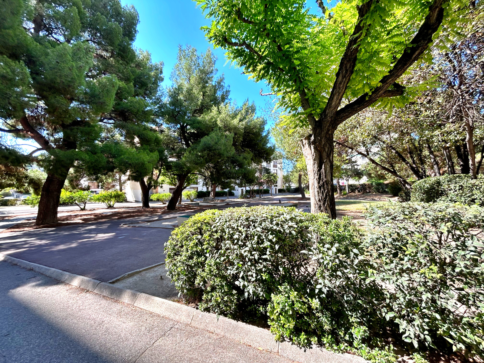 Le stationnement libre dans la résidence.