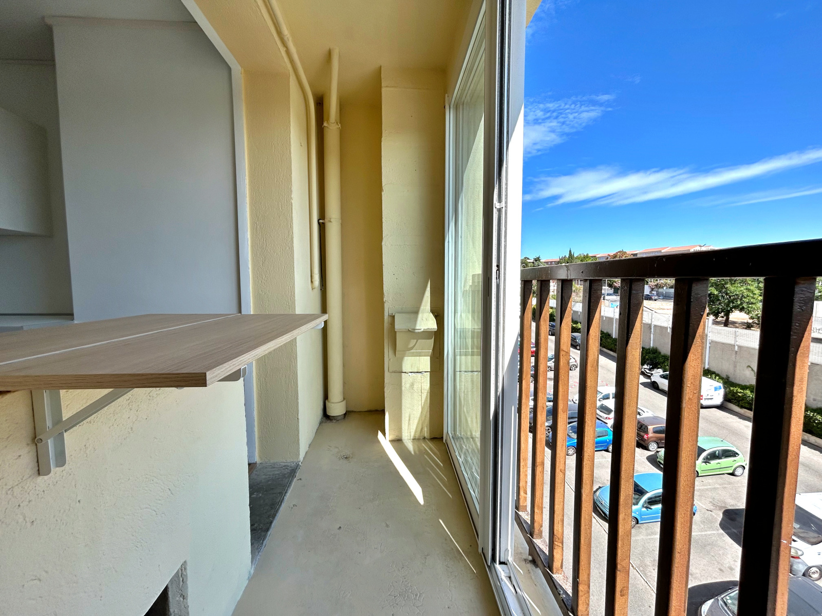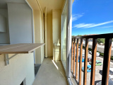 Il se compose d'un salon de 14,07m² exposé Sud-Ouest avec cuisine séparée de 7.01m² donnant accès à une loggia et un débarras.